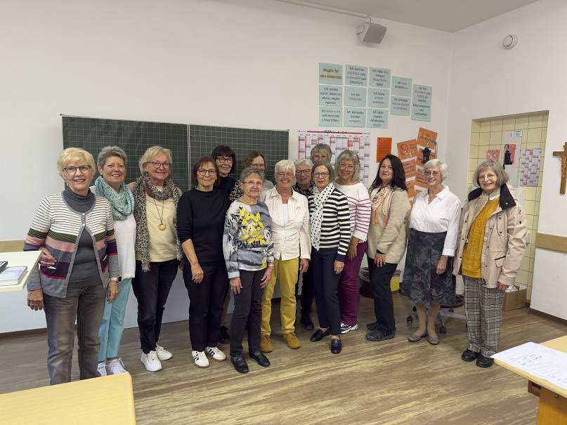 Da staunten unsere Schülerinnen nicht schlecht, als am vergangenen Mittwoch 15 gut gelaunte, sich immer wieder umarmende und laut lachende ältere Damen gegen Mittag die Schule betraten und sogleich in einen lautstarken Austausch traten. Die Gruppe von Seniorinnen war aber genau wie sie Schülerinnen der Maria-Ward-Schule –hatten sie doch vor 55 Jahren hier ihren Realschulabschluss abgelegt und zuvor, wie die heutigen Schülerinnen, Jahre zusammengelebt und gearbeitet. Die Gruppe der heute über 80-Jährigen wurden von Schulleiter Patrick Matheis begrüßt und in ihr altes Klassenzimmer geführt. Hier entstand ein inspiriertes Gespräch über die damalige und die heutige Schule. Immer wieder unterbrochen von Ausrufen, wie „erinnert ihr euch noch an…?“ – und schon waren die Damen in wildem Austausch und eine Anekdote folgte der nächsten. Spannend waren auch die vielen unterschiedlichen Werdegänge der Damen und das Resümee, dass die Maria-Ward-Schule ihr Leben intensiv geprägt hatte. Zwar empfanden einige Damen aus heutiger Sicht manches als streng, man war sich aber einig, dass alle für Leben elementare Werte und Kompetenzen von der Schule erhalten hatten und sie jederzeit ihre Töchter und Enkelinnen voller Überzeugung auf die MWS geschickt haben bzw. hätten. Auch beim anschließenden Rundgang durch die Schule kamen zahlreiche Erinnerungen hoch und es wurde viel gelacht und nachgefragt, wie denn die Schule heute mit diesem oder jenem Umstand umgeht. Der Abschluss fand in der Hauskapelle der Schule statt, in der sogar eine Ehemalige vor vielen Jahrzehnten geheiratet hatte. Herzlichen Dank, liebe Ehemalige des Abschlussjahrgangs 1970 für den wunderbaren Austausch, bleiben Sie gesund und kommen Sie recht bald wieder.