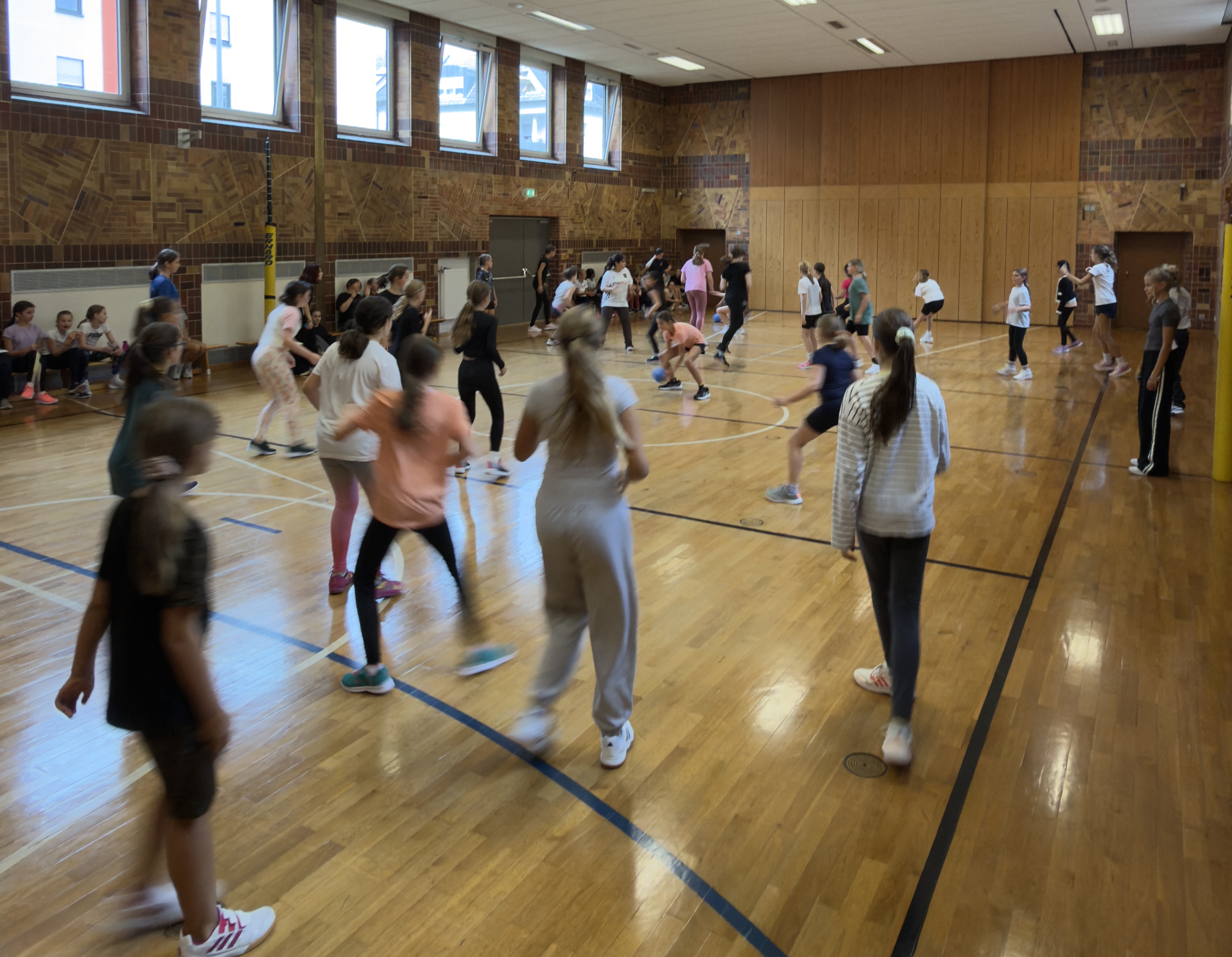Am Freitag, den 26.09.2025, fand das mit Spannung erwartete gemeinsame Völkerballturnier der sechsten Klassen des Gymnasiums und der Realschule statt.Die Schülerinnen waren voller Begeisterung dabei und zeigten nicht nur Ehrgeiz, sondern auch einen tollen Teamgeist. Die Klassen wurden jeweils in zweiMannschaften aufgeteilt, doch beide Teams kämpften gemeinsam für ihre Klasse. Lautstark feuerten die zuschauenden Schülerinnen ihre Mitschülerinnen zur Unterstützung an. Nur gelegentlich mussten die Schiedsrichterinnen und Linienrichterinnen einschreiten, wenn im Eifer des Spiels ein Ball am Fuß nicht gespürt wurde oder doch eine Linie übertreten wurde. Diese nicht ganz einfache Aufgabe wurde von den Schülerinnen der Klasse 7B der Realschule sehr verantwortungsvoll übernommen. Die älterenMädchen setzten sich selbstbewusst mit ihren Pfeifen durch. Am Ende gewann dieKlasse 6b des Gymnasiums mit deutlichem Punktevorsprung. Jubelnd nahm sie denPokal und den Hausaufgabengutschein entgegen. Die Enttäuschung mancherGesichter verfliegt hoffentlich bis zur nächsten Sportstunde. Vielen Dank an alle Teilnehmerinnen und Mithelfenden für diesen schönen Wettkampftag.
