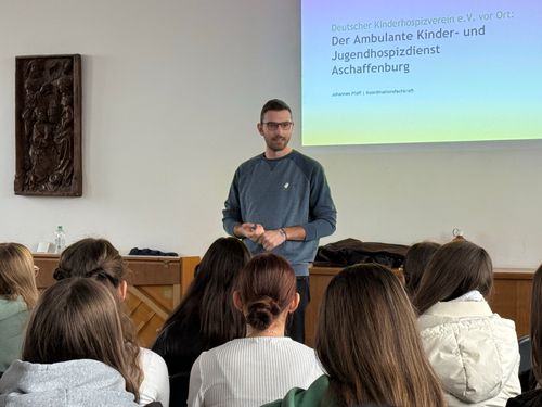 Die Schülerinnen der 10. Klassen der Maria-Ward-Realschule hatten die Gelegenheit, einen besonderen Besuch zu empfangen: Einen Mitarbeiter des Kinderhospizvereins. Herr Pfaff stellte beidem Besuch im Rahmen des Religionsunterrichts die wichtige Arbeit des Vereins vor und gab den Schülerinnen Einblicke in die Unterstützung, die für schwer kranke Kinder und deren Familien seitens der Haupt- und Ehrenamtlichen geleistet wird. Dazu gehören vor allem auch die Zeit, die die Mitarbeiterinnen und Mitarbeiter den Familien schenken. So wurde von den Erfahrungen berichtet, aber auch von der Verbundenheit mit den Kindern, Jugendlichen und ihren Eltern.